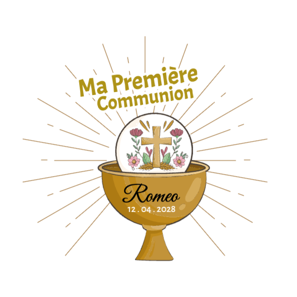 Un verre personnalisé communion qui célèbre cet événement spirituel avec élégance et lumière. La croix dorée et les rayons symbolisent la lumière de la foi pour un souvenir de communion intemporel. Personnalisez avec le prénom et la date pour un cadeau invité unique qui remplace les traditionnelles dragées.