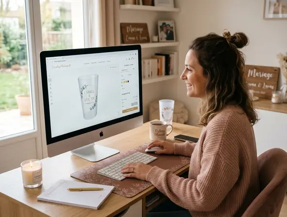 Gobelets personnalisés parfaits pour le mariage de ma fille. L'outil de personnalisation 3D est très intuitif et le résultat final est exactement ce que nous voulions. Merci !
